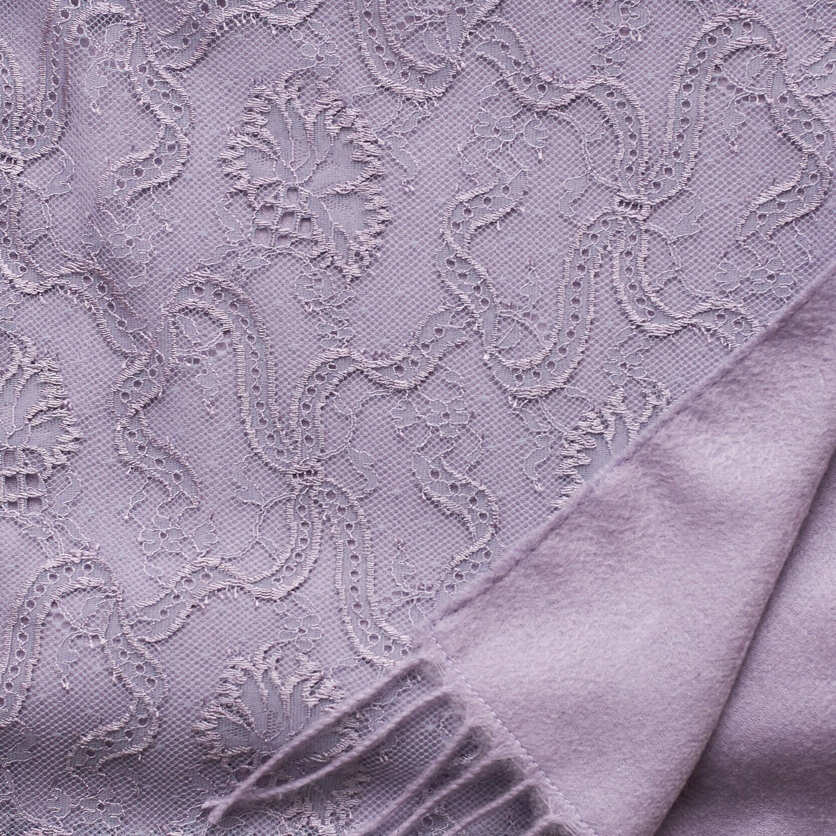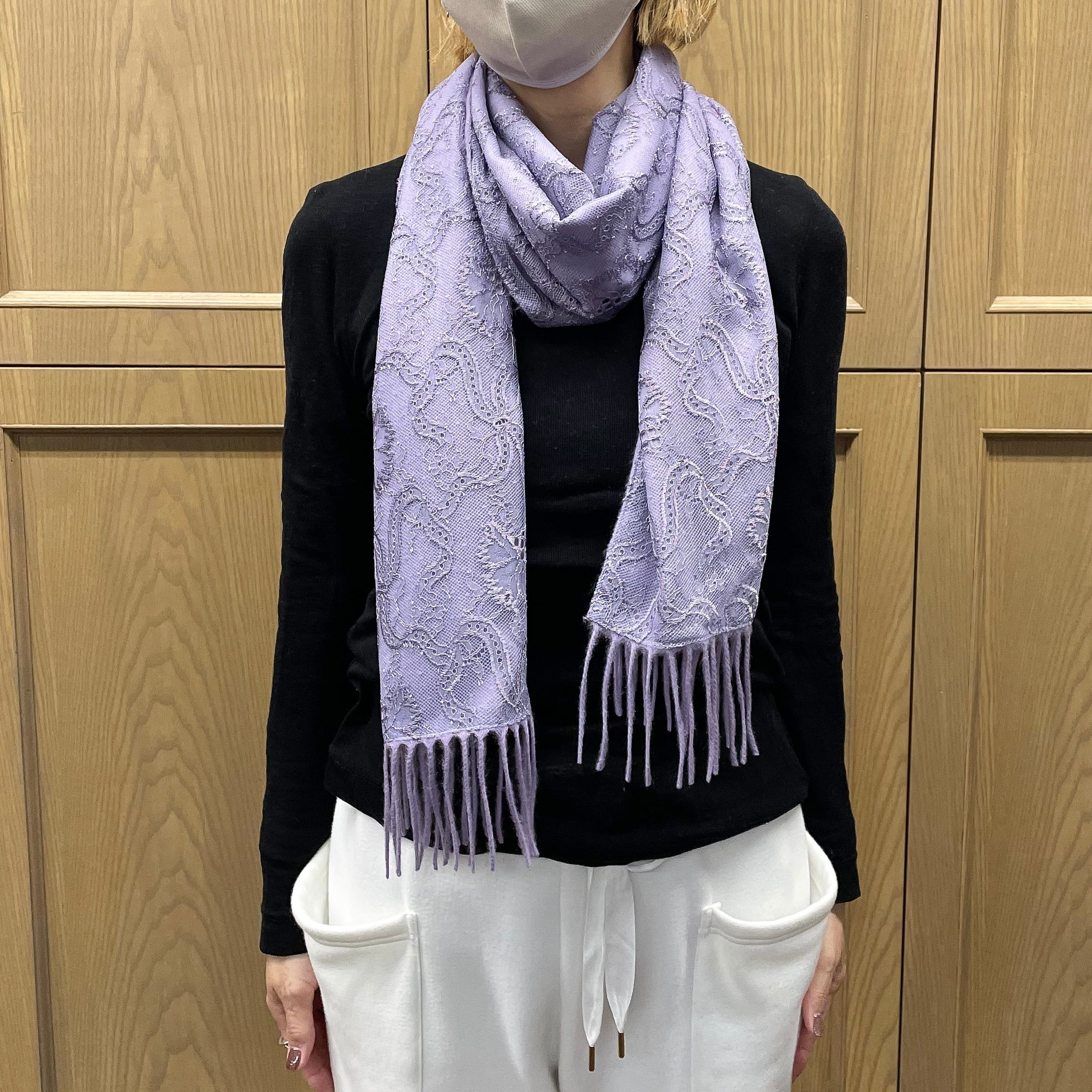 リバー機で繊細に織られたレースは肌触りもよく、柔らかで軽いカシミア素材は寒い冬から夏の避暑地までオールシーズンお使いいただけます。